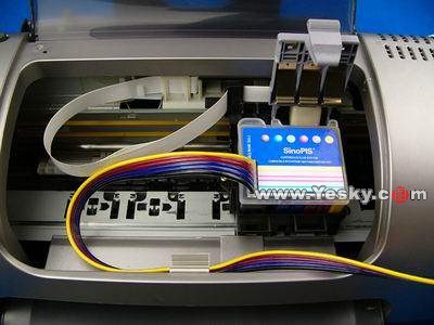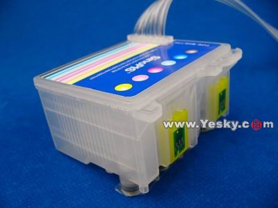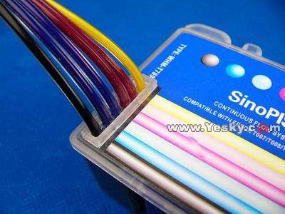 無海綿墨盒配以硅膠管線和各色外墨盒蓋,組成連續(xù)供墨系統(tǒng)的內(nèi)部部分,當然也少不了永久長效芯片。