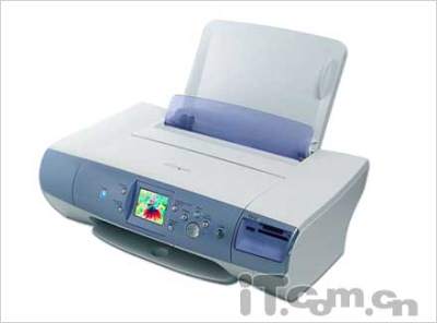 愛普生 Stylus Photo R310,它是一款全面配合數碼相機的照片打印機,在外型上相對于前文介紹的那款HP機型的確龐大了不少,不過在功能性上也有增加了許多,這也是該款照片打印機的一大特色。它可以脫離PC進行獨立照片打印,共有獨立插卡、有線、紅外或藍牙無線三種照片輸入方式。