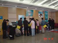 總體感覺邯鄲廣告市場比較成熟,展會前我們拜訪了邯鄲幾個有名的噴繪公司如晨光廣告、勝吉廣告公司和花之雨等。通過和他們交流,他們普遍認(rèn)為噴繪價格價格比較低,但是還不至于到通過價格來拼客戶的地步,同時認(rèn)為機(jī)器的選擇是很重要的。他們憑借著MIMAKI噴繪機(jī)的良好性能和自己的智慧能力一直服務(wù)于很多有名的客戶如中國移動等。這些客戶談及MIMAKI都贊不絕口。和晨光廣告公司的蔡總交談了解到,他們先前買過別人的一臺第四代的B品牌微壓電寫真機(jī),剛開始幾個月使用還可以,后來就出現(xiàn)很多問題,后來購買了我們一臺MIMAKI,同時表示如果這個機(jī)器賣出去會再買一臺MIMAKI,因為他們覺得MIMAKI 噴繪機(jī)性能比較穩(wěn)定,機(jī)器比較專業(yè)。