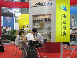 我公司展位位于2號館內(nèi), 總展出面積200多平米,主要展出了戶外高精度噴繪機——水星噴繪機、YSL雷鳥/颶風設備,戶內(nèi)寫真機——MIMAKI系列,雕刻機系列——雕霸雕刻機、利得寶激光雕刻機,還展出了藝美佳耗材——imacolor藝美佳墨水、imacolor藝美佳相紙系列。