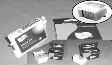 EPSON的打印機(jī)在墨盒上幾乎都裝有IC智能芯片,記錄墨水使用量,那么在打印機(jī)顯示墨盡以后就會停止工作,要使它工作就要將IC智能芯片恢復(fù)到初始狀態(tài)。目前恢復(fù)的辦法,一是使用恢復(fù)軟件,比如最有影響力的俄羅斯SSC Service Utility軟件,現(xiàn)已經(jīng)升級到了v3.71版本(下載網(wǎng)站:http://www.ssclg.com/epson.shtml)二是將墨盒從打印機(jī)中取出,用解碼器刷新。這兩種辦法都比較麻煩,原因是軟件并不支持所有打印機(jī),取出墨盒刷新則更不好,所以連續(xù)供墨的內(nèi)墨盒上就用到了另外一個辦法——直接裝入永久芯片。永久芯片體積大小和原廠墨盒上的IC智能芯片幾乎一樣,但是在恢復(fù)的方法上有區(qū)別:裝入永久芯片的打印機(jī)在面板指示燈閃動或者電腦提示“墨盡”后,有的是采用關(guān)閉打印機(jī)電源幾分鐘后再次開啟電源、有的是采用更換墨盒的 “形式主義”方法后去操作面板按鍵,而內(nèi)墨盒根本就不用取出來;有的是拔掉打印機(jī)電源插頭,用斷電辦法就可以讓永久芯片恢復(fù),這個時候在電腦中查看剩余墨水就 “滿”了,打印機(jī)就可以繼續(xù)工作了。